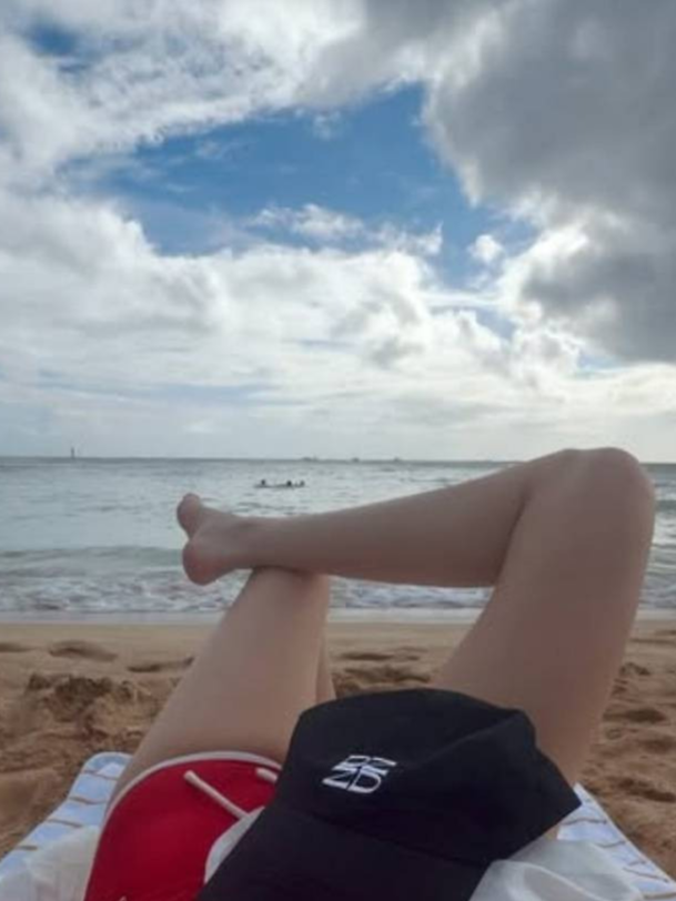 여기에 효민은 블랙 캡과 미러 선글라스를 매치해 쿨한 무드를 완성했으며, 비치룩의 정석을 다시 썼습니다.