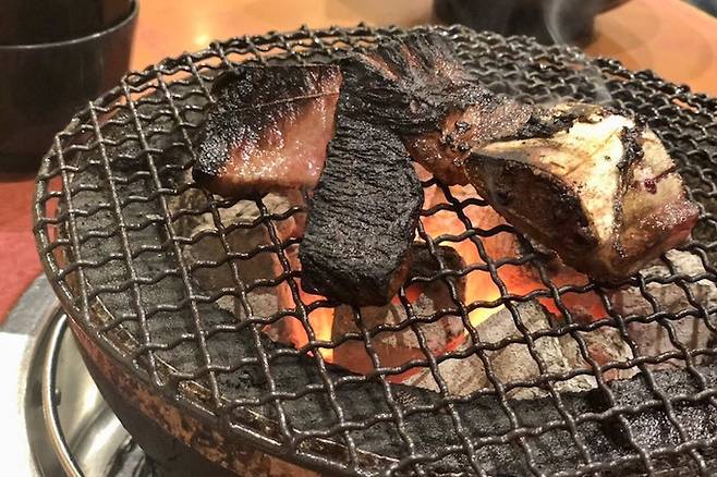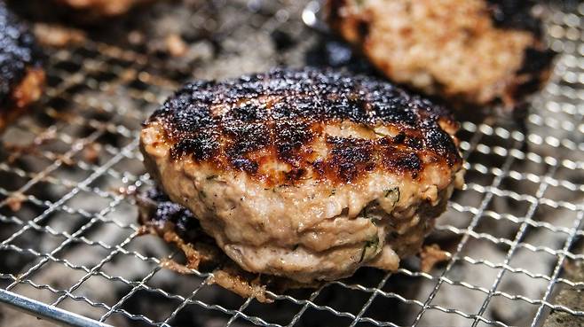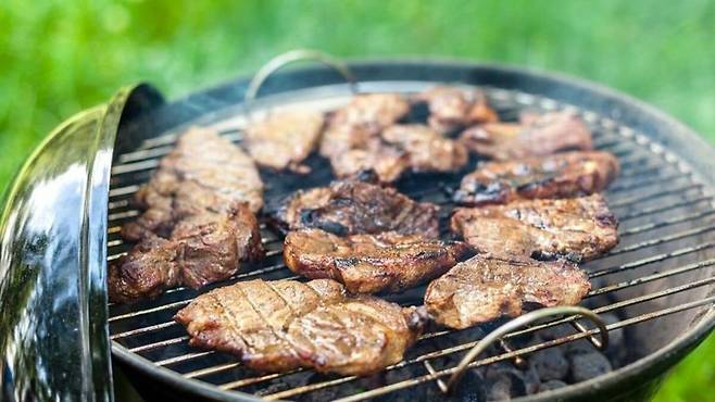 고기를 구울 때 기름이 불 위로 떨어지면 불길이 치솟고 연기가 더 많이 발생한다.