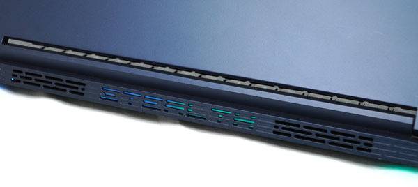MSI 스텔스 AI Studio A1VFG-U9 OLED는 양 측면의 I/O 포트와 후면을 힌지 사이에 배치된 통풍구 외에, 모니터 양쪽 힌지 사이에도 추가로 통풍구가 배치되어 발열을 배출하도록 설계되었다. 후면 통풍구 사이에는 제품 브랜드인 스텔스(STEALTH) 로고를 따라 LED 조명을 배치해 자태를 뽐내며, 후면 양 코너쪽에도 LED 조명이 심어져 있다.