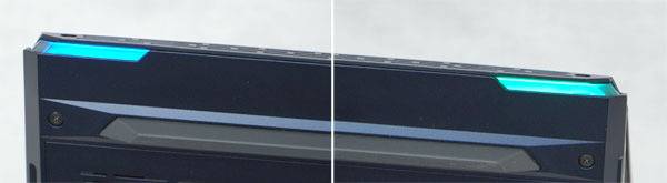 LED 조명은 뒷면 환풍구와 후면 모서리에만 있는 것이 아니다. 키보드에도 LED 조명을 심어 키를 쉽게 구분하는 것과 함께 디자인 요소를 강화했으며, 취향에 따라 키보드의 LED 조명을 끌 수 있다.