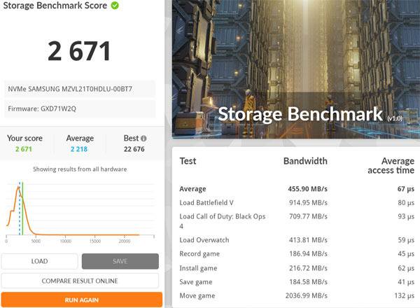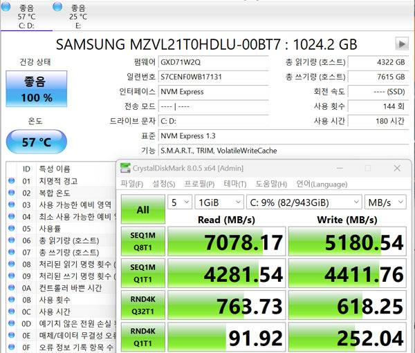 보드나라에 샘플로 제공된 MSI 스텔스 AI Studio A1VFG-U9 OLED 모델은 삼성 PM9A1a 1TB SSD가 탑재되었다. PCIe 4.0 x4Lane 인터페이스에 최대 연속 읽기 성능 7000MB/s, 연속 쓰기 성능 최대 5100MB/s 속도를 지원하는 모델로, 동일한 인터페이스지만 연속 읽기와 쓰기 성능이 각각 4200MB/s와 1800MB/s 성능이었던 마이크론 2400 탑재 모델에 비해 훨씬 쾌적한 스토리지 성능을 발휘한다.