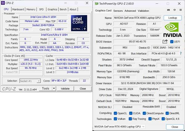 CPU는 현재 2세대 코어 울트라와 비교해도 큰 손색없는 성능을 발휘하고, AI 작업 가속을 위한 최대 13 TOPS 성능의 NPU가 통합된 1세대 코어 울트라 제품군중 가장 높은 성능의 코어 울트라 9 185H가, 그래픽 카드는 엔비디아의 랩탑용 지포스 RTX 40 시리즈 중 메인스트림급 모델인 지포스 RTX 4060이 쓰였다.