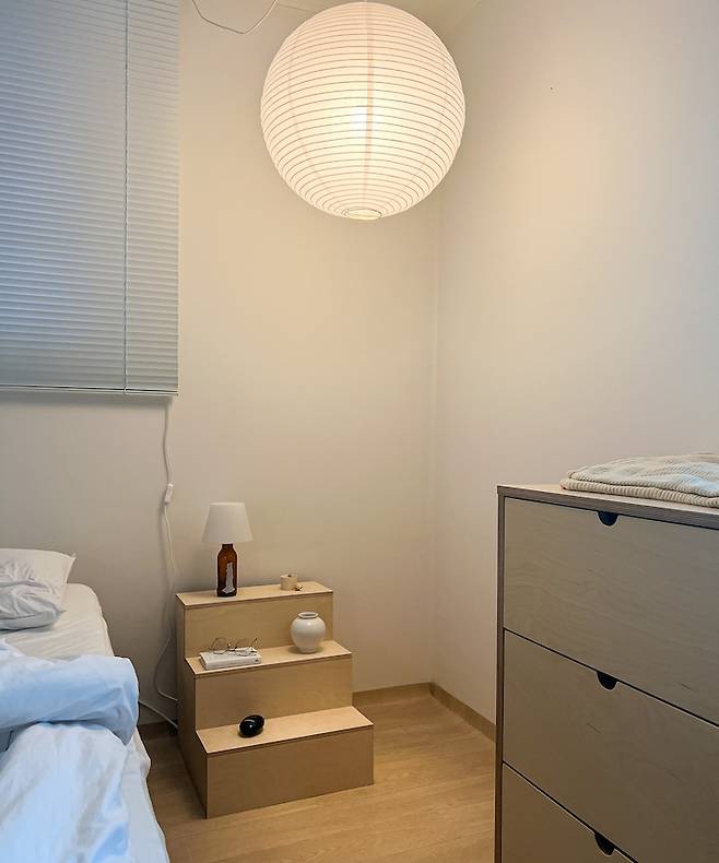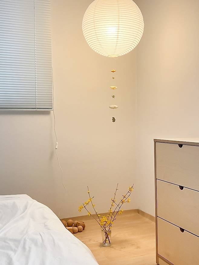 그리고 안방에 배치한 조명들은 모두 노란 불빛으로 선택했는데요. 우드로 채워진 안방을 한층 더 따듯하고 아늑하게 만들어 준답니다.