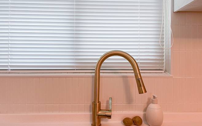 사실 거북목 수전은 실버 컬러로 선택했지만 시공업체에서 골드로 가져오셨는데 오히려 무광 골드가 주방에 포인트도 되고 예뻐서 그대로 두었답니다.