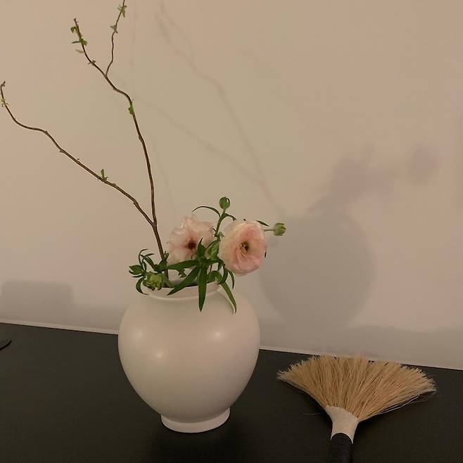 저는 한국적인 소품이나 인테리어를 참 좋아해서 이렇게 달항아리, 모시 빗자루, 명태 액막이, 모시 모빌 등 곳곳에 소품으로 활용하곤 하는데요. 조만간 전통 무늬를 활용해서 창문 가리개도 만들어보려고 해요.