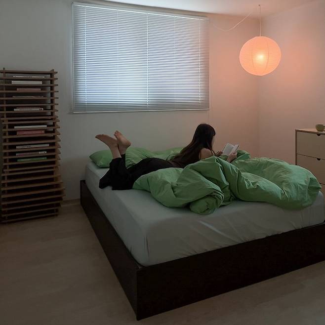 저희 집의 안방은 두 면이 창으로 되어 있고, 남서향이라 낮에는 햇빛이 굉장히 잘들어오는 공간인데요. 구옥이라 그런지 두 창문의 크기가 달라서 블라인드와 커튼을 많이 고민했지만 앞서 말했듯 '잠'만 자는 공간 그리고 '휴식'의 공간으로 침대를 중앙에 배치하게 되어 침대를 사용할 때 산만하지 않도록 블라인드를 설치했어요.