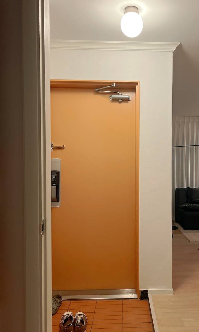 제가 셀프 인테리어 후 가장 사랑하는 공간은 현관과 길고 큰 베란다의 가장 안쪽 공간인데요. 직접 칠하고 고친 현관과 제 취향이 듬뿍 담긴 테라코타 타일로 마감한 작은 현관은 외출하고 돌아올 때 집을 더욱 아늑하고 따듯하게 만들어 주는데요.