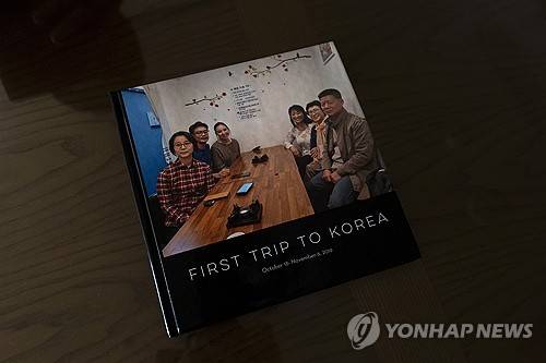 A photo book sits in the home of Han Tae-soon in Anyang, South Korea, on Saturday, June 1, 2024. Han's daughter, Laurie Bender, third from right sitting next to Han, made her the album to celebrate their reunion. Bender was approached by a strange woman while playing in the front yard in Korea in 1975. She remembers the woman saying that Bender's family didn't want her anymore because her mother had another baby. She went with the woman and felt so sad she thought she might die. (AP Photo/Jae C. Hong)