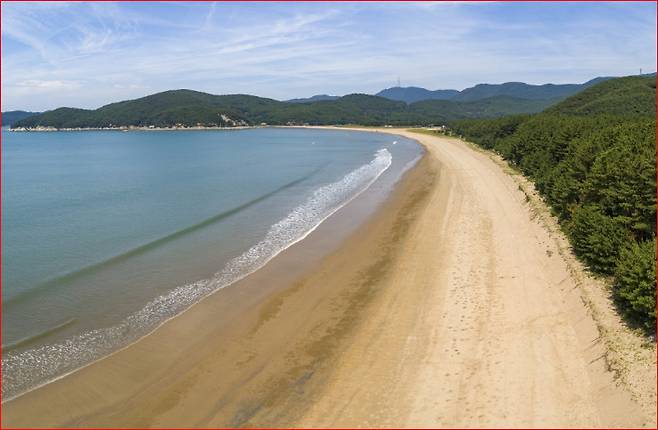 수백 년 된 해송 숲과 넓은 백사장이 펼쳐져 여름철 해수욕과 캠핑, 산책에 제격인 명소.