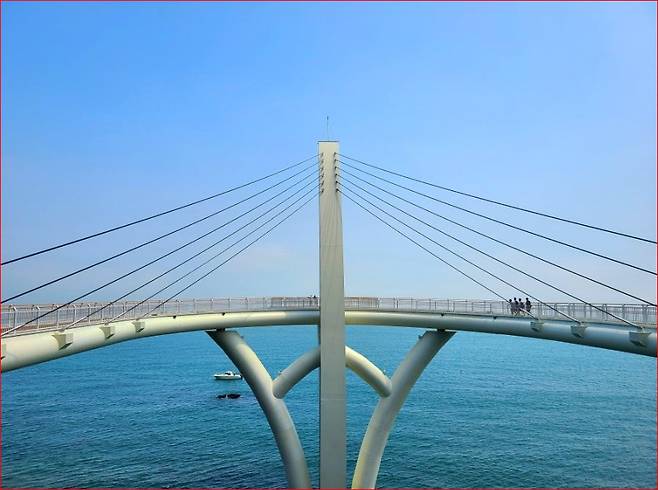하늘에서 내려다보면 마치 오징어를 닮은 형태로, 가장 끝에는 360도로 바다를 조망할 수 있는 원형 전망 공간이 자리합니다.