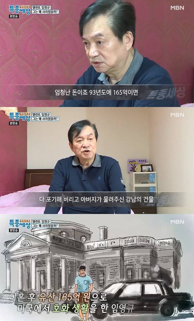 이혼 이후 임영규는 아버지가 물려준 강남 건물을 포함해 당시 시세로 약 165억 원에 달하는 재산을 상속받는다.