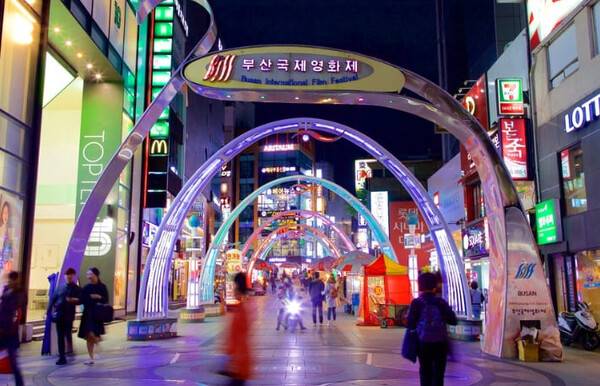 충무동 육교 쪽으로 장소를 이동하면 부산국제영화제의 상징인 아치와 할리우드 영화 테마로 장식한 상가들이 줄지어선 영화제의 거리를 볼 수 있습니다. 부산국제영화제 기간에는 미디어로만 보았던 감독과 배우들을 실제로 만날 수 있으며, BIFF 광장 앞 큰 도로를 건너면 자갈치 시장이 있어서 구경거리도 풍부합니다.