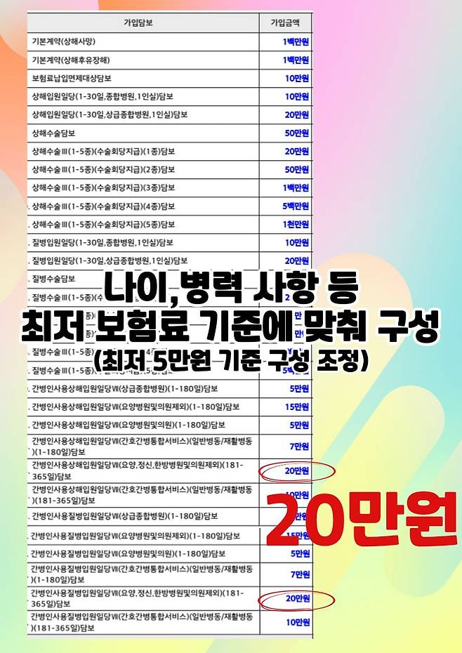나이, 병력사항, 직업 등에 따라 보험료나 구성이 다를 수 있으니,