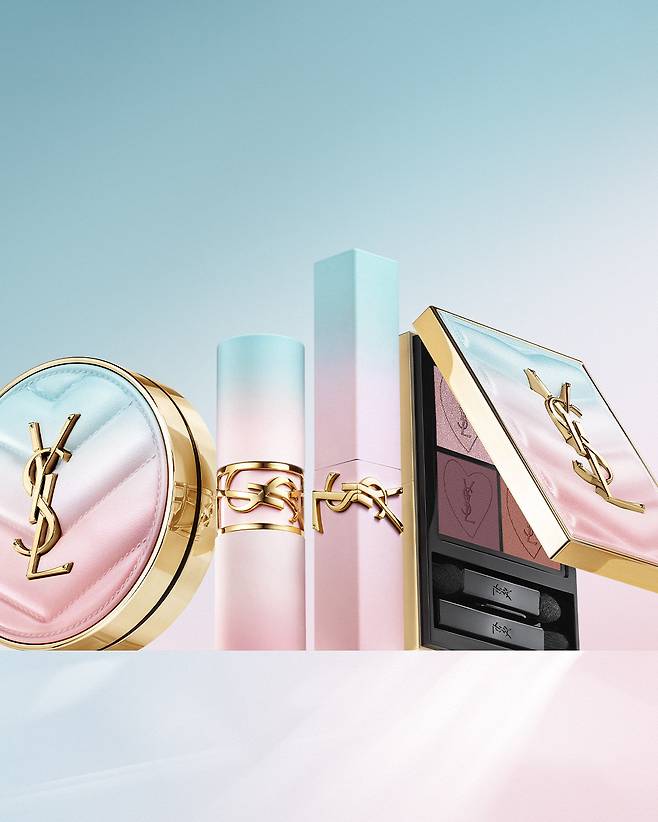 입생로랑 러브 컬렉션은 파란 하늘이 핑크빛 선셋으로 물들여지는 순간의 낭만을 담았으며, 패키지 역시 스카이블루 컬러와 베이비 핑크 컬러가 자연스럽게 이어지며 사랑스러움을 더했다.