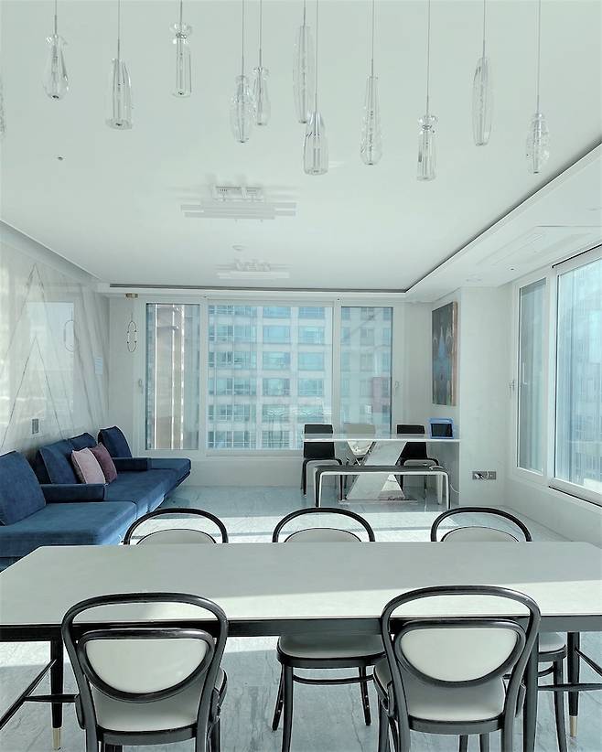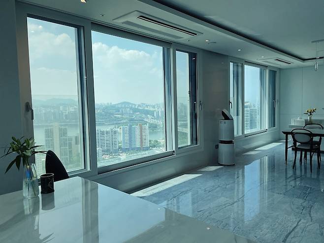 한강이 펼쳐져 있는 예쁜 집! 매일 꾸미는 재미가 있는 집이에요. 도화지같이 하얀 집이라서 어느 작품을 가져다 놓아도 다 잘 어울리기도 하구요.