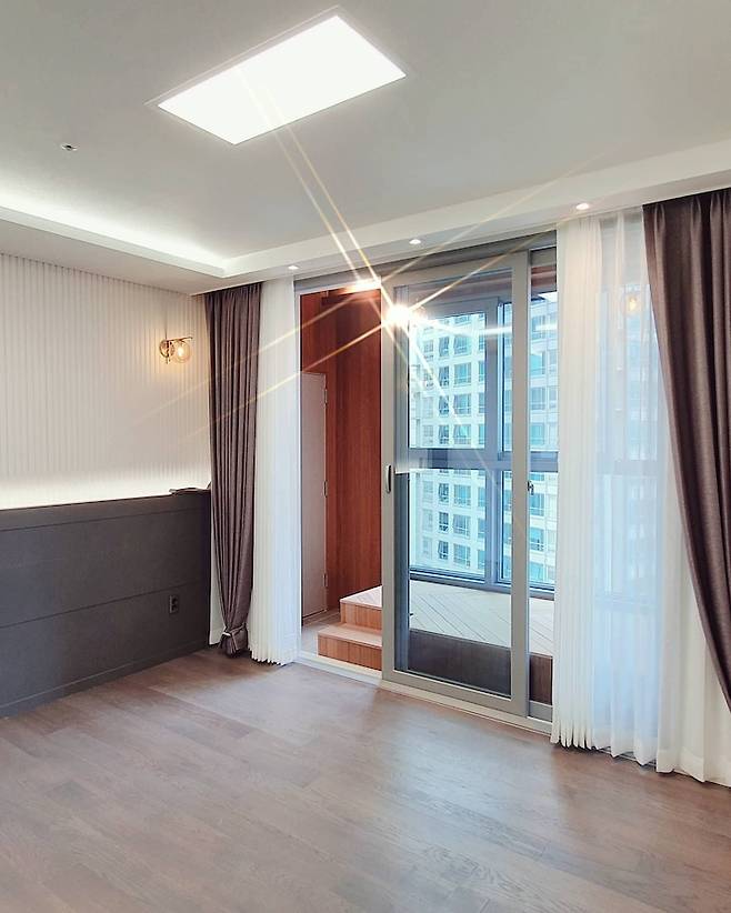 정말 호텔에 놀러온 기분이 들어요. 무소음 전동 블라인드 커튼을 내리면 이렇게 예뻐져요! 햇빛이 은은하게 들어오면서 은은한 느낌을 줍니다. 이것도 또 다른 느낌을 주죠?