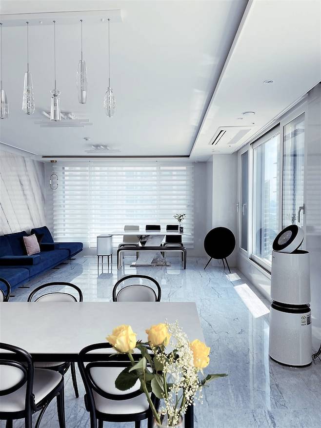 신축 아파트라 새집 이지만 벽을 흰색 대리석으로 바꾸고 싶었고 하얀색 도화지 같은 느낌을 주고 싶었어요.