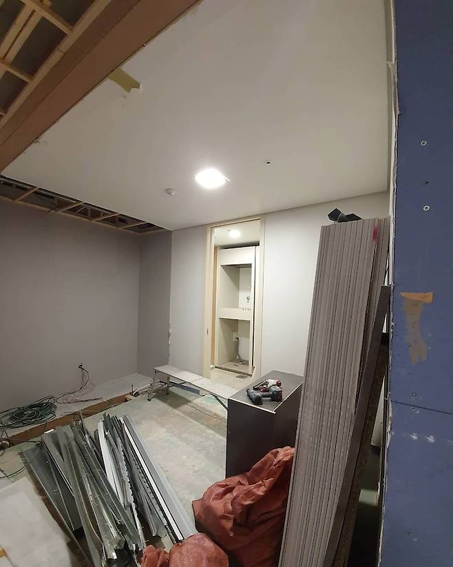 시공 전엔 팬트리 룸이었어요. 선반만 여러 개 있었는데 저희는 이 곳을 게스트룸으로 만들 거에요. 에어컨도 설치하고 바닥도 다 뜯어 보일러도 재시공하고 대리석도 시공하고 면적도 넓히고 꽤 어려운 공사에요! 이제 개봉박두!!!