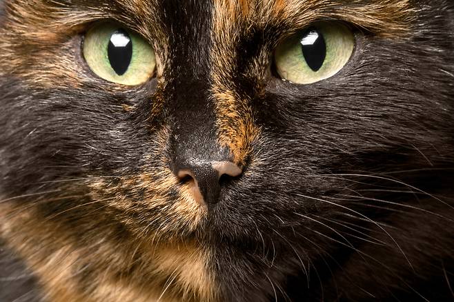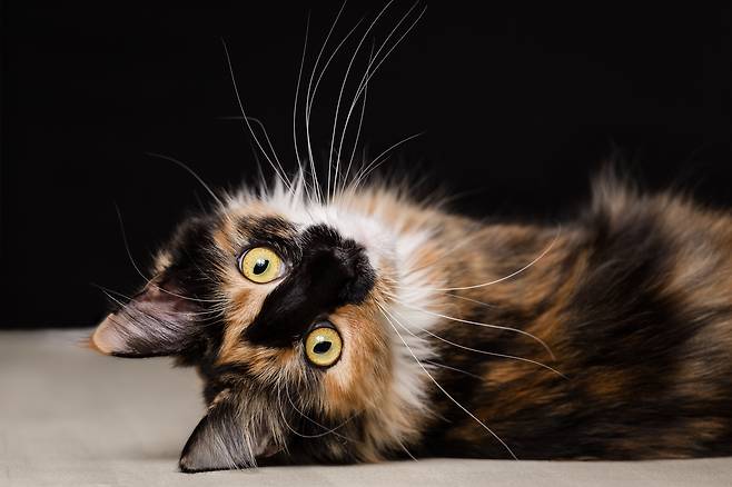 그 이유는 X 성염색체에 의해 털색이 정해지기 때문인데요. 암컷은 XX, 수컷은 XY 염색체이기 때문에 암컷이 주황색과 검정색 두 가지 색의 털을 동시에 가질 수 있습니다.