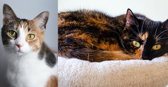 - 삼색 고양이(Calico) : 흰 바탕에 두 색의 반점이 확실하게 분리된 모습