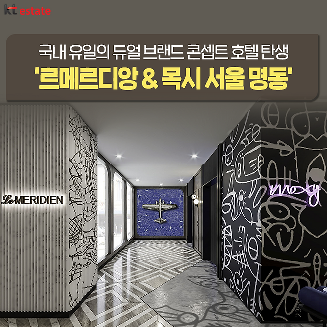 르메르디앙 & 목시 서울 명동은 KT에스테이트가 옛 KT서울중앙지사 빌딩을 개발한 복합건물(15층) 내에 자리합니다. 무엇보다 서울 상업·관광의 메카인 명동에 자리하고 있어 최고의 입지를 자랑하며, 5~8층에는 목시 서울 명동이, 9~15층에는 르메르디앙 서울 명동이 한 건물 내에 합쳐진 듀얼 브랜드로 첫선을 보이게 됩니다.