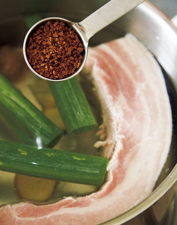 수육을 삶을 때 커피가루를 한 스푼만 넣어도 고기의 품질이 확 달라집니다.