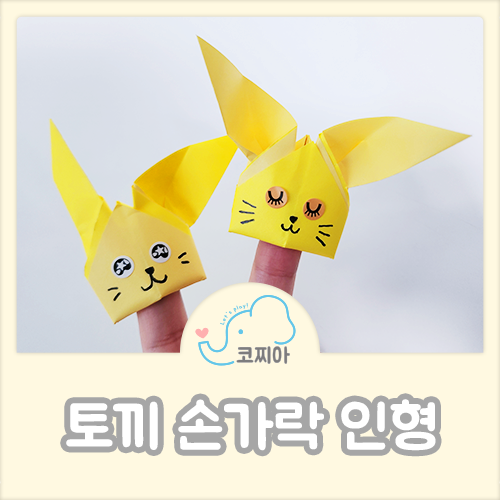 지난번에는 휴지로 토끼 손가락 인형을 만들어 보았는데요, 오늘은 아주 간단한 방법으로 색종이를 접어 만든 토끼 손가락 인형이랍니다. 휴지는 접을 때 너무 잘 찢어져서 아이가 힘들어 했는데, 색종이는 잘 찢어지지 않으니 혼자서도 척척 접더라구요. 대신 색종이를 선택하실 때 양면 색종이를 이용하실 경우 이쁘지 않을 수 있답니다. 예를들어 앞, 뒤 색깔이 너무 다르면 토끼 얼굴 색깔이 달라져서 되도록이면 앞, 뒤 색깔이 같은 색종이를 이용해주시길 바랄게요!