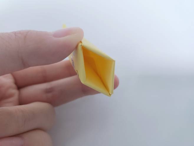 양쪽 옆 모서리를 안쪽으로 접어주세요.
