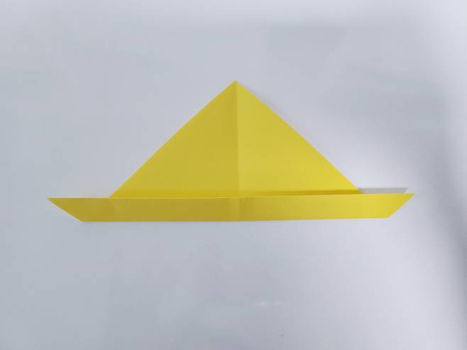 그다음 아래쪽 모서리 종이를 잡고 위로 올려 삼각형 모양 안쪽으로 끼워 넣어주세요.