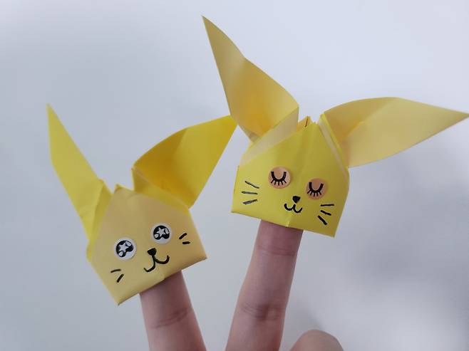 귀여운 토끼 인형이 완성되었어요! 아이와 함께 재미있는 토끼 손가락 인형극 놀이를 할 수 있어요~