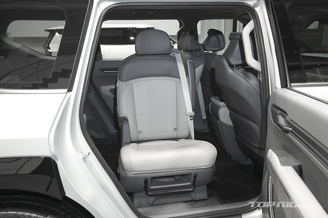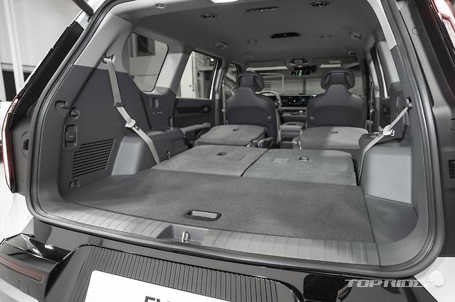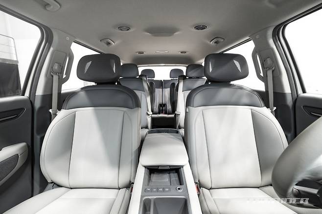 EV9 벨트라인은 기존 기아 SUV와 비교해 낮게 디자인돼 탑승객이 실내에서도 트여 있는 오픈 뷰를 느낄 수 있다. 또한 헤드레스트는 탑승객이 뒷좌석에 앉았을 때의 개방감을 위해 슬림하고 간결하게 설계됐다. 아웃도어 활동에 최적화된 커스터마이징 옵션이 제공될 예정이다.