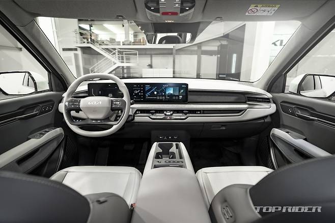 12.3인치 디지털 계기판과 12.3인치 디스플레이로 구성된 콤보 디스플레이가 탑재됐는데, 각 디스플레이 사이에 5인치 공조 디스플레이가 배치됐다. 내비게이션과 미디어, 홈 버튼은 히든 터치 타입으로 센터 가니쉬에 적용됐다. 시동이 켜지기 전에는 깨끗한 하나의 면이다.