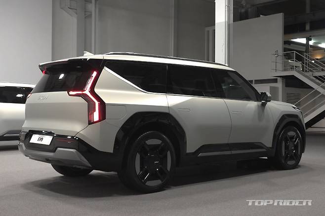 EV9은 기아 EV6에 이은 두 번째 E-GMP 기반 전기차로 플래그십 SUV를 담당한다. EV9은 스포티함이 강조된 EV6와 다르게 어센틱하고 박시한 SUV 스타일이다. EV9 외관에는 전면부 타이거 노즈 그릴에 기술적이면서도 현대적인 감각을 녹여낸 디자인 언어가 반영됐다.