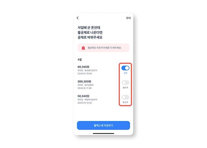 다만 앱이 자동으로 사용 용도를 명확히 파악하고 구분하기 어렵기 때문에 확실한 불공제 내역 외 나머지 내역은 사장님이 직접 보시고 공제/불공제를 설정해 주시면 돼요.