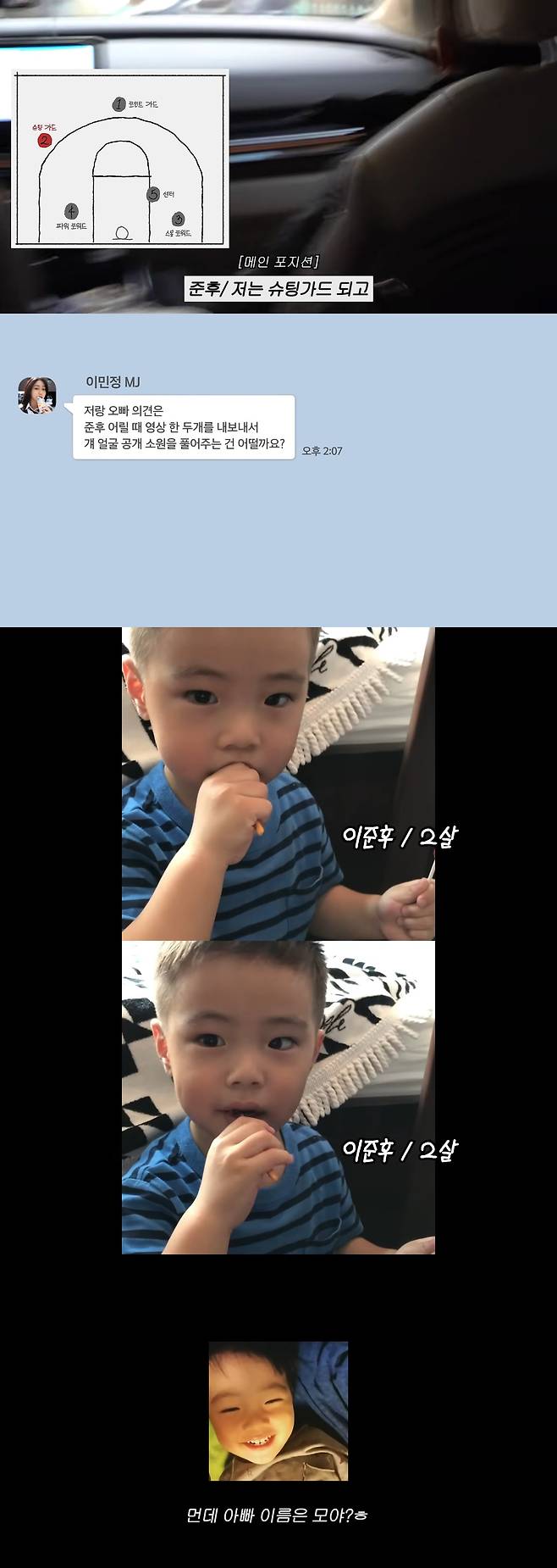 이 영상은 이민정이 아들 준후를 농구 대회에 데려다주는 하루를 담고 있다. 카메라 앞이 익숙한 듯 자연스럽게 말을 이어가는 준후는 "이름은 이준후고 ○○동에 산다"고 말하며 출연 의욕을 숨기지 않았다.