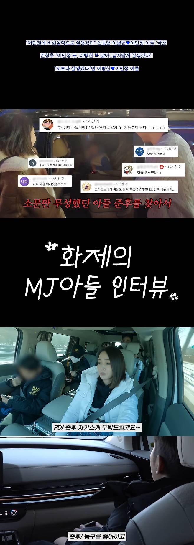 준후는 인터뷰 내내 '유튜브에 꼭 나오고 싶다'는 바람을 드러냈고, 이민정은 “알려지는 삶은 네가 선택할 문제다”라며 신중한 태도를 보였다.