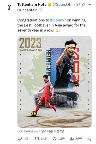 | ▲ 손흥민이 2023년을 빛낸 아시아 최고 선수로 선정됐다. |