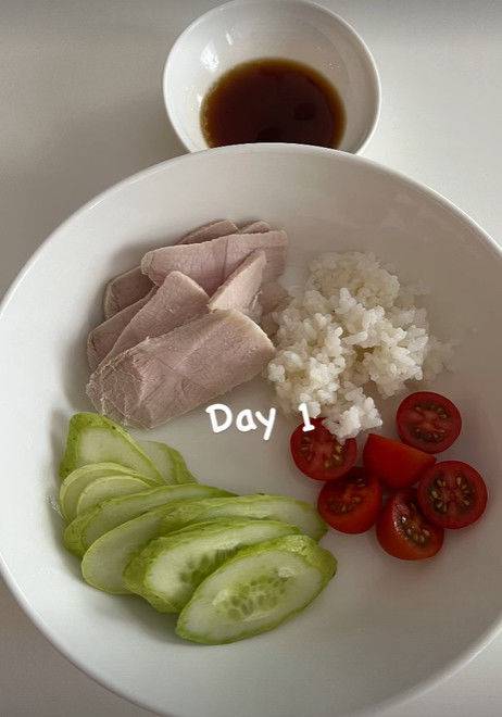 배우 한예슬은 밥 한 줌, 방울토마토 3개, 오이, 닭가슴살이 전부인 식단을 공개했지만, 결국 “더는 못하겠다”며 다이어트를 포기했다.