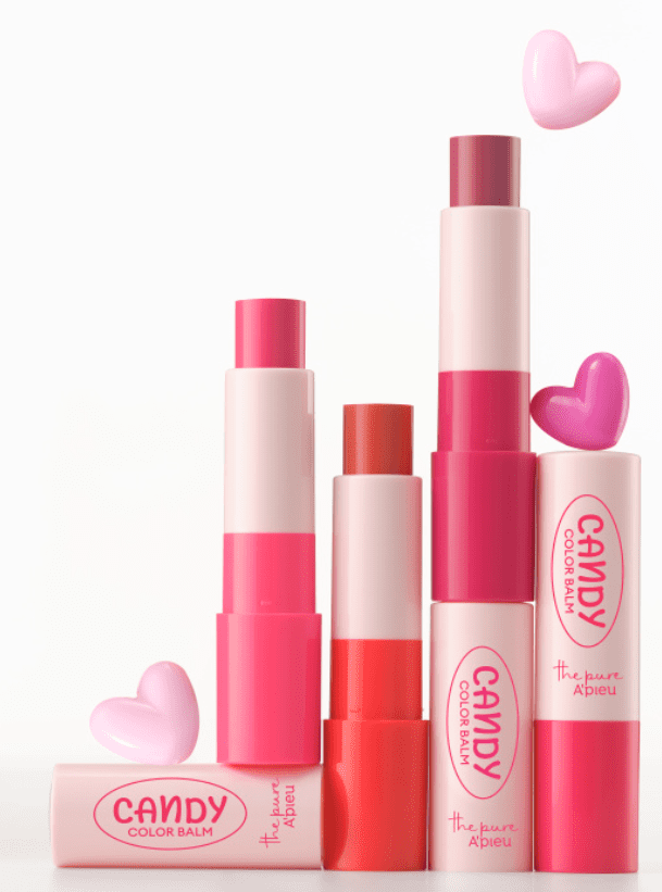 또한 어퓨는 캔디 틴트와 함께, 컬러 립밤인 '어퓨 더퓨어 캔디 컬러밤'도 함께 출시했는데요. 마찬가지로 3000원인 가격에 촉촉하면서도 얇게 올라오는 발색력으로 맑고 투명한 컬러를 표현하기 좋은 제품입니다.
