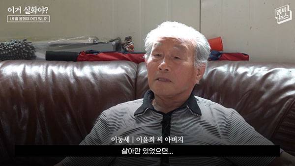 [이동세/이윤희 씨 아버지] "이윤희가 어디에서 살아만 있었으면 되겠고 그 관련된 자들은 내 딸이 죽지 않고 살아서 건강한 몸으로 가족들 앞에 나타나기만 하면 내가 그 사람들한테 무슨 책임을 묻게 한다든지 내가 그런 짓은 안 하겠어요. 내가 지금 85살이고 집사람이 82살 언제 죽을지 모르는데 죽기 전에 딸이 살아있다는 걸 좀 확인하고 죽고 싶어요."