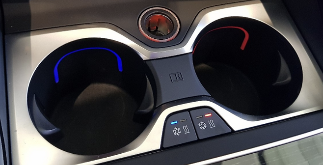 파란색(냉각) 버튼: 컵홀더의 바닥과 벽면에 붙어있는 펠티어 소자의 '차가운 면'을 활성화시켜, 캔이나 컵의 냉기를 유지시켜 줍니다.