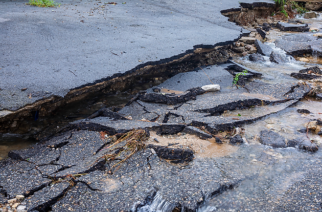 폭우 시 침수된 도로는 무조건 우회하세요.