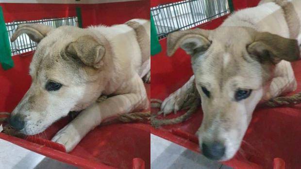 보호소 설명에 따르면 이 개는 집 마당에 자꾸만 들어와 개 사료를 훔쳐먹는 유기견으로 신고됐다.
