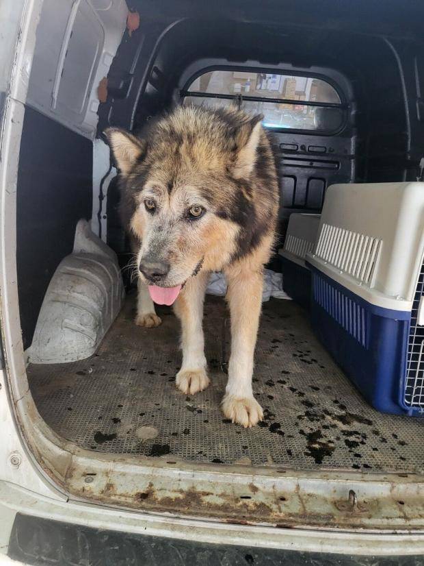 이 강아지는 지난 23일 경기도 평택시 진위면 동천 1길 13에서 발견돼 구조됐다. 검정색과 갈색이 섞인 털을 가진 수컷 시베리안 허스키로, 몸무게는 35kg에 2015년생으로 추정된다.