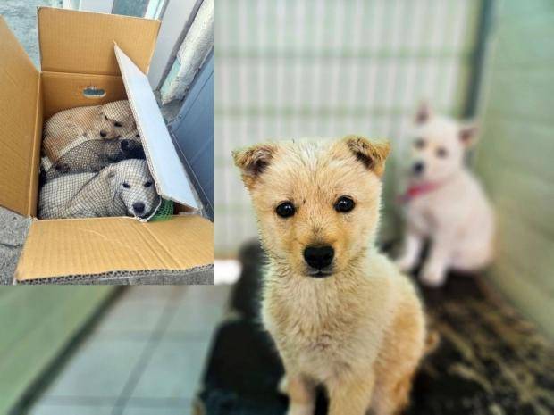 이 강아지들은 지난 22일 경북 포항시 남구 철강로 174-1에 위치한 한 식당에서 발견, 구조됐다.