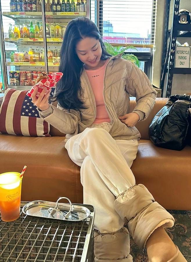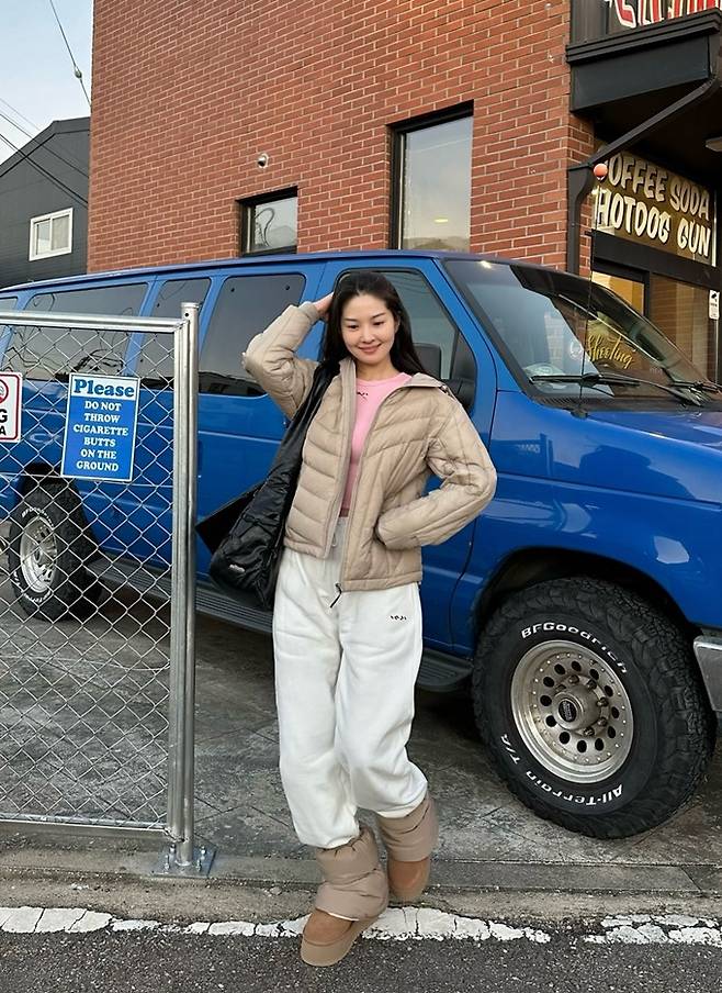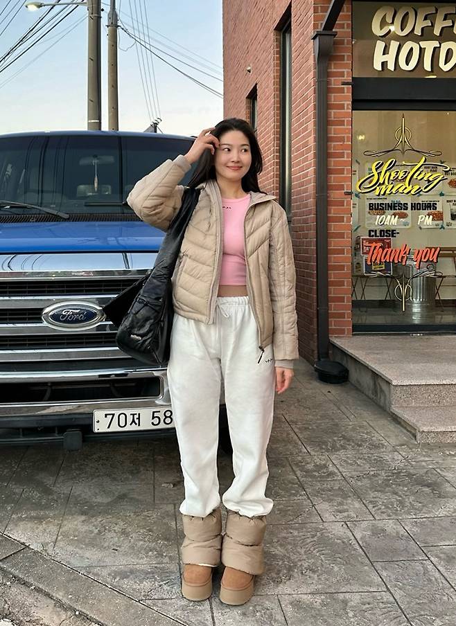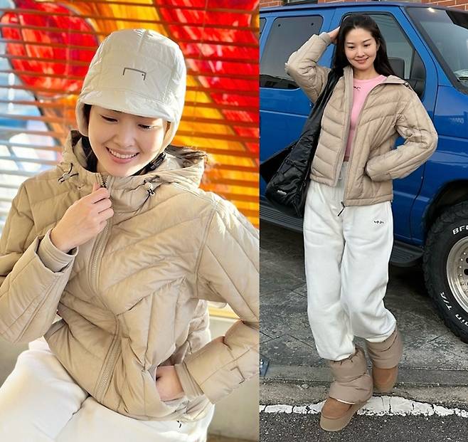 공개한 사진에서 류이서는 경량 패딩 집업 재킷에 패딩 모자와 패딩 레그워머까지 패딩으로 무장한 포근하면서도 따뜻한 겨울 스타일을 완성했다.