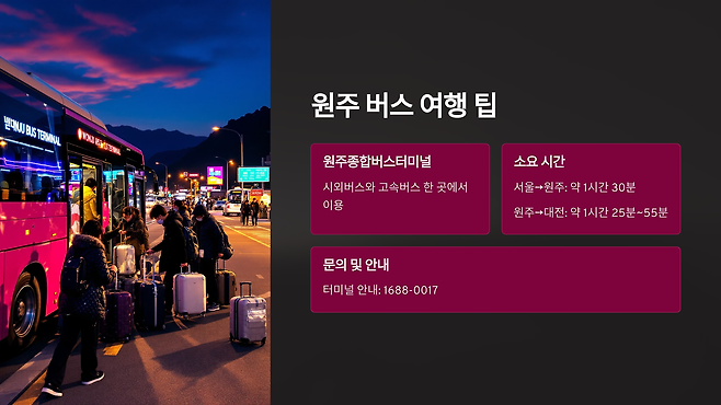 1. 강원도 원주로 떠나는 여행, 버스 정보 한눈에 확인하세요!