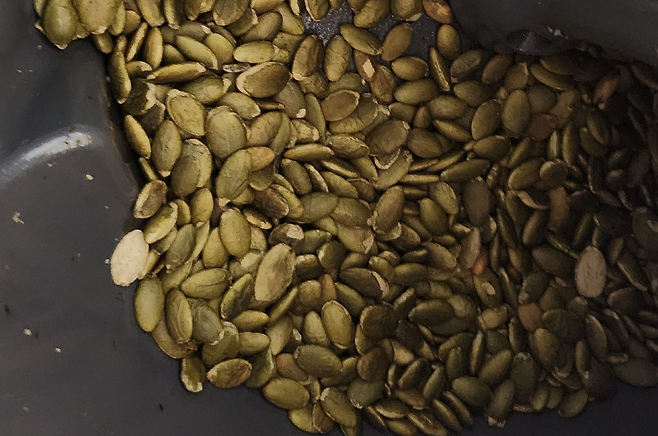세 번째로 손발 저림 완화에 도움이 되는 음식은 호박씨다. 호박씨에는 마그네슘과 아연이 풍부하다. 이 두 미네랄은 신경 흥분을 조절하고 신경 전달의 안정성을 유지하는 데 필수적이다. 손발 저림이 있는 사람을 보면 근육 경련이나 눈 떨림을 함께 호소하는 경우가 많은데 이 역시 마그네슘 부족과 연관된다.
