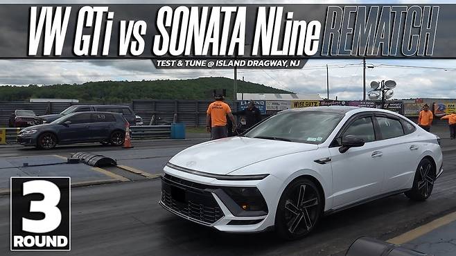 중형 세단과 해치백의 자존심을 건 한판 승부가 미국 뉴저지주 드래그 레이스 트랙에서 펼쳐졌다. 주인공은 현대차의 쏘나타 N라인과 폭스바겐의 골프 GTI로 두 차종 모두 전륜구동 기반 고성능 모델이다.
