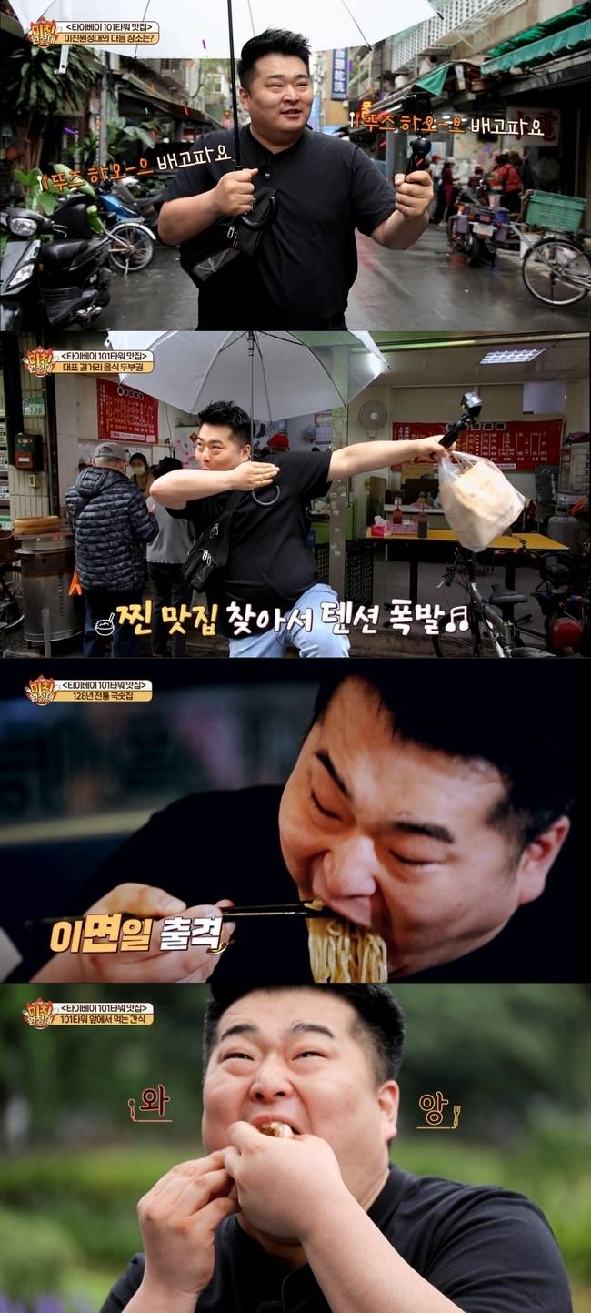 첫 번째 먹로드로 대만을 방문한 이원일은 128년 전통의 담자면 식당에서 역대금 면치기를 선보였다.